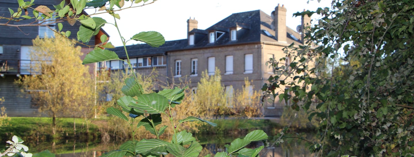 Promenez-vous et regardez : des bâtiments modernes et fonctionnels côtoient des maisons au charme normand plus traditionnel, créant un paysage visuel inattendu.