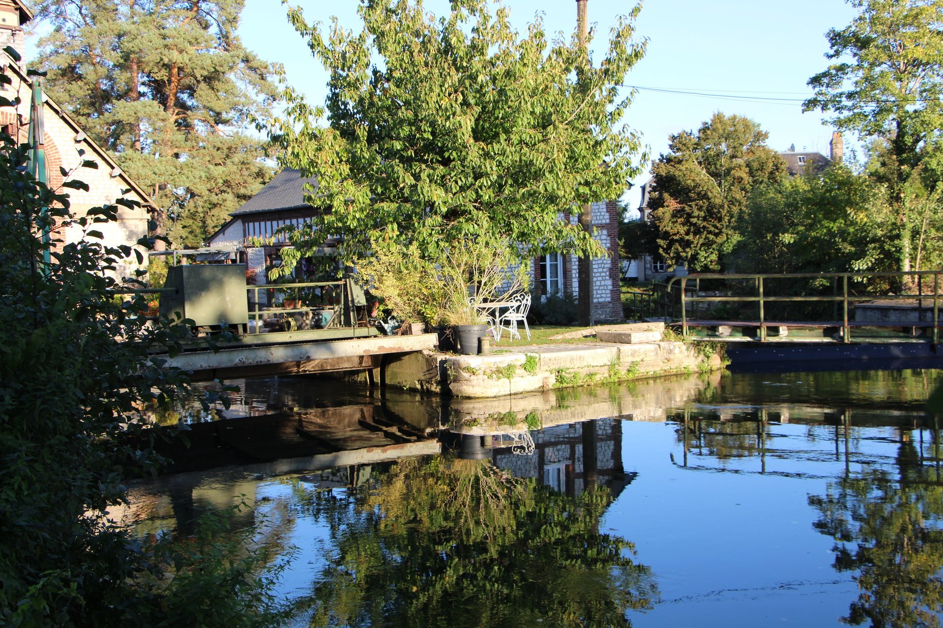Le site de l’usine hydroélectrique n’a pas toujours été ce qu’il est aujourd’hui. Historiquement, cet endroit était une écluse du XIXᵉ siècle, construite pour réguler la navigation sur l’Eure et maintenir un niveau d’eau stable pour les moulins et activités locales. À l’époque, la rivière était un axe commercial important jusqu’à son déclassement en 1926.